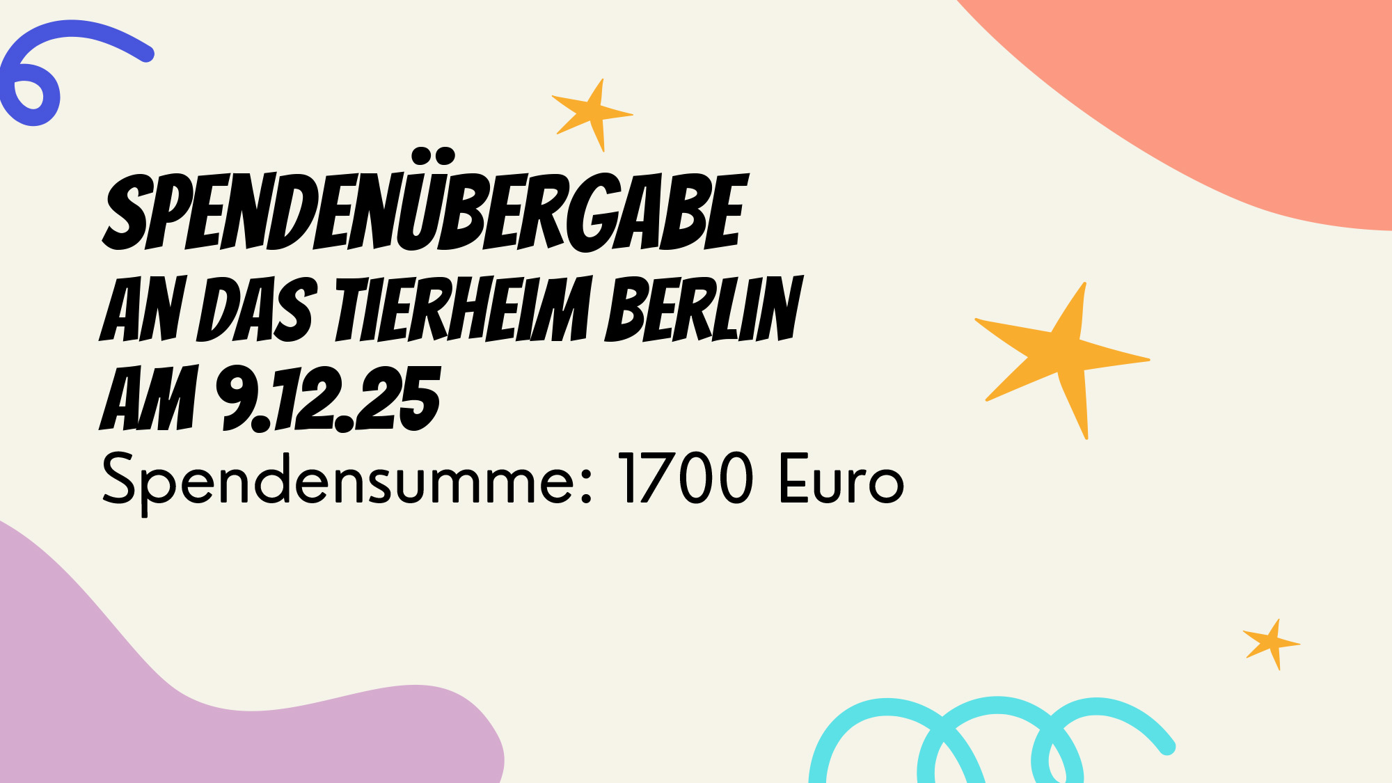 Am 9.12.25 besuchte uns das Tierheim Berlin und eine Spende in Höhe von 1700 Euro konnte in der Hofpause feierlich übergeben werden.